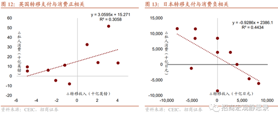 从政策效果的角度,国际经验显示政府补贴在东西方国家获得的效果不同。英国、美国、法国等西方国家的数据显示,居民从政府获得的转移收入上升,消费开支会随之上升,而日本和韩国等东亚国家的数据则恰恰相反,即政府补贴对居民消费的提升不明显,甚至负相关。