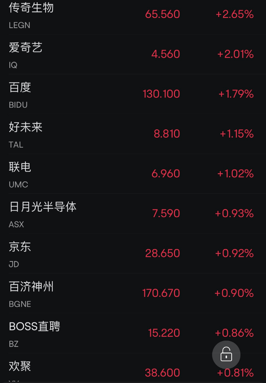 热门中概股涨跌不一,金生游乐涨7.67%,亘喜生物涨6.3%,达达集团涨5.25%,万国数据涨3.22%,传奇生物涨2.65%,爱奇艺涨2.01%,360数科涨1.91%;跌幅方面,亿咖通科技跌11.76%,盛丰物流涨10.78%,能链智电跌8.84%,盛大科技跌8.01%,图森未来跌5.75%,大全新能源跌4.77%,亿航智能跌4.75%。中概新能源汽车股集体下跌,蔚来汽车跌1.81%,小鹏汽车跌0.11%,理想汽车跌2.79%。
