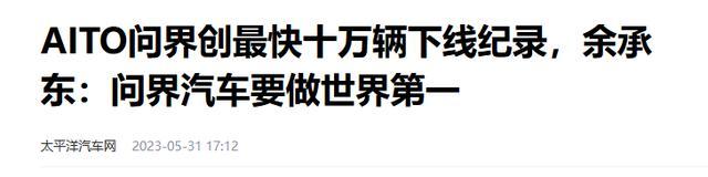 余承东一度豪言,只要给华为一些时间,未来AITO问界肯定能完成单月10万辆的目标。余承东还放言,在他的世界里没有第二,问界汽车要做世界第一。