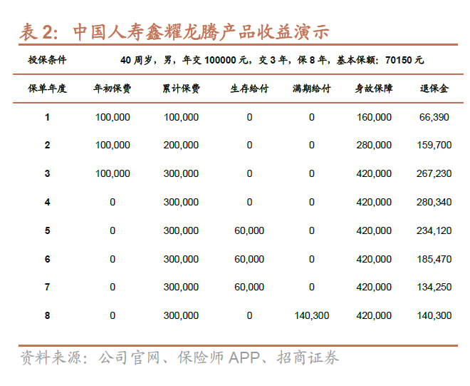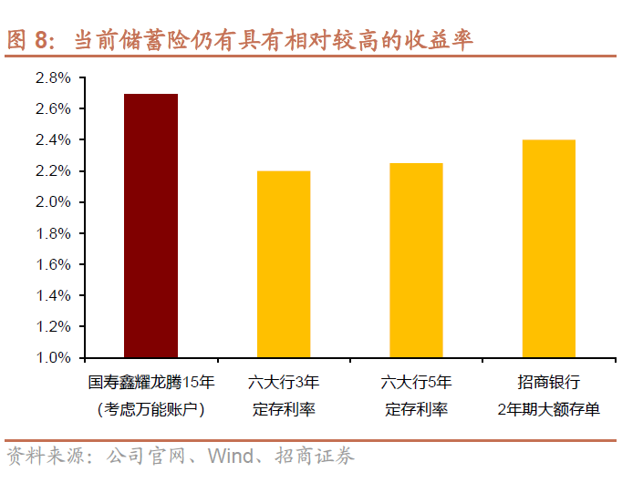 以国寿最新上市的鑫耀龙腾两全保险为例,15年后产品IRR约为2.7%,仍然具有相对较高的收益率。