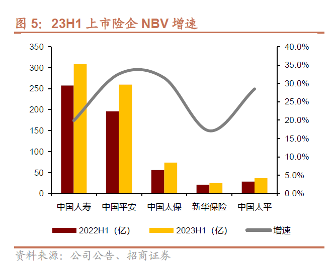 但人均产能均大幅提升,23H1各公司人均NBV增速分别为平安76.1%>新华30.2%>太保26.7%>国寿25.5%>太平21.5%,预计绩优人群是其中贡献的主力军。