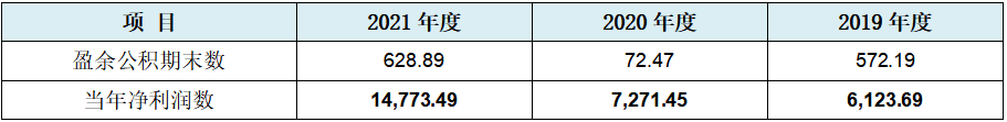 发行人资产负债表披露的盈余公积期末数与当期净利润的比较情况见下表: