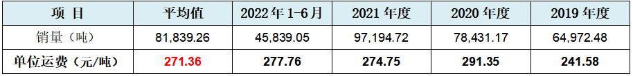 招股书披露的发行人铜球销量和单位运费情况,具体见下表: