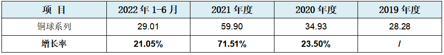 发行人披露的核心业务磷铜球收入额及增长率情况见下表: