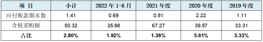 从上表我们可以看到,发行人以年均50亿元的采购金额,但平均每年拖欠供应商才1.41亿元,占比仅为2.80%,好像发行人不是在经营企业,而是在做慈善。发行人一边紧盯收款丝毫不敢懈怠,一边向银行担保贷款举债经营,忍受着4%的主业毛利率,将期间费用压榨到极致。而这里却对供应商无比大方,给供应商系数结清,几乎不存在拖欠供应商货款事宜,发行人的供应商可谓幸福到顶点。可事实情况真的如此吗?按一般来讲,随便一个月结30天、月结60天、月结90天发行人的应付账款的平均期末余额也应该是4.19亿元、8.39亿元、12.58亿元,而现在发行人的平均应付账款平均余额只有1.41亿元。在行业叠加三年疫情时艰情况下,发行人独揽所有压力微笑面对所有供应商,发行人的此举不是在做慈善又是什么。