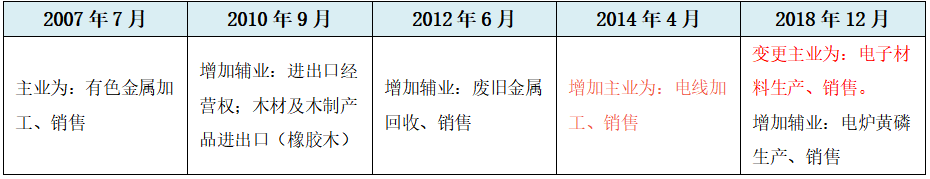 如果说铜球业务是发行人报告期内的新业务,那大家可能就会好奇那发行人的原来的旧主业是啥?估值之家就告诉大家,发行人报告期初的前三年,也即2014年-2018年其主业是做电线的,甚至是收旧铜的,你信吗?至于为啥,因为发行人营业执照上的主要经营项目在2018年12末才从电线加工、销售变更成电子材料生产、销售。我们整理出发行人的经营范围变更情况,具体见下表: