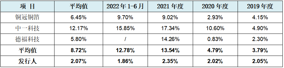 从上表可以看到,发行人都不是绝对碾压了,而直接是行业平均值的2-2.5倍,管你上市公司是做什么铜的,浮夸到如此之程度。