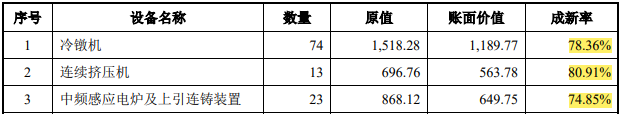 而发行人招股书中报告期为2019年-2022年6月30日,横跨3.5年的期间,但上述经计算的铜球主要生产设备中,使用年限最短的是连续挤压机1.97年,也即大规模启用时间为2020年6月份左右。使用年限最长的是中频感应电炉即上引连铸装置2.59年,也即大规模启用时间为2019年11月份左右。冷镦机大规模启用时间为2020年3月份左右。