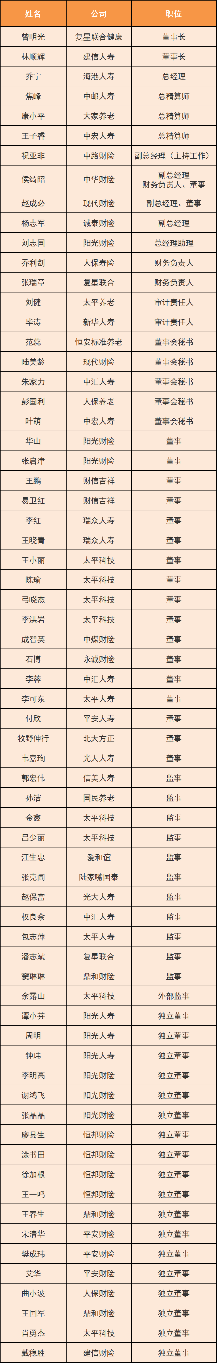 此外,9月郭晓涛接棒陈心颖出任中国平安集团联席首席执行官,以及阳光人寿总经理(总裁)王润东辞职,由副总经理李所义接任等人事变更也备受业内关注。