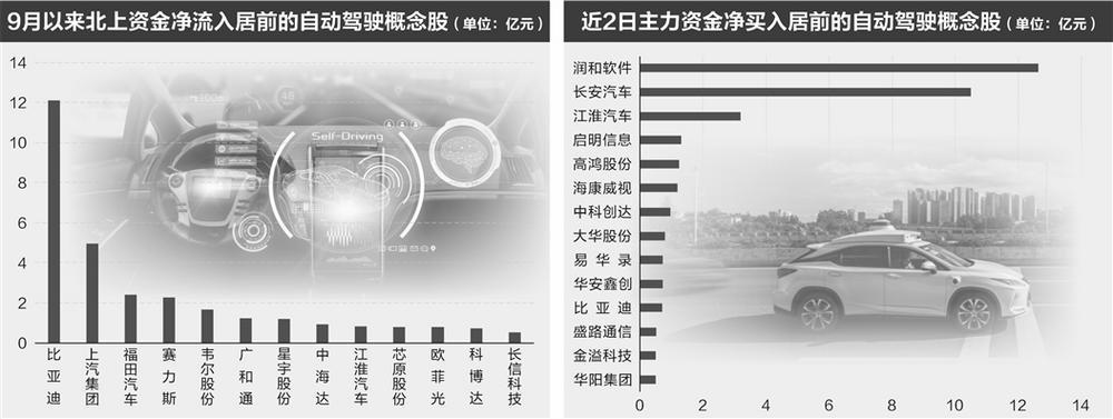 从资金面来看,9月以来,30余只概念股获得北上资金净买入,其中7股的净买入额超亿元,比亚迪、上汽集团、福田汽车、赛力斯分别获得12.1亿元、4.94亿元、2.39亿元和2.28亿元的净买入。