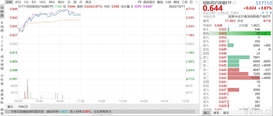 以创新药沪深港ETF(517110)为例,今年以来截至8月22日,跌幅超16%,8月23日截止到10月11日盘中,创新药沪深港ETF有回暖上涨趋势,涨幅逾10%。