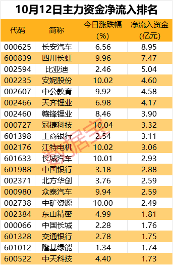 从个股看,沪深两市15股主力资金净流入超2亿元。长安汽车主力资金抢筹8.95亿元,居首位。