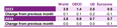 欧佩克在报告中将2023年全球经济增长预测上调至2.8%,并将2024年全球经济增长预测维持在2.6%不变,“2024年全球经济将稳健增长,加上中国经济的持续改善,预计石油消费将进一步提振。”