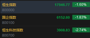 10月13日消息,美股周四反覆向下,美国9月份通胀数据较预期强劲,市场对加息预期升温,三大指数均录得跌幅收市。美元走势向好,美国十年期债息回升至4.69厘水平,金价及油价反覆偏软。今日港股三大指数低开,恒生指数跌1.6%,报17946.77点,恒生科指跌2.74%,国企指数跌1.83%。盘面上,科网股集体低开,京东集团跌超7%领衔,百度集团跌超4%,美团、阿里巴巴跌超3%;汽车股普遍下跌,小鹏汽车跌超4%;内房股齐跌,世茂集团跌近3%。