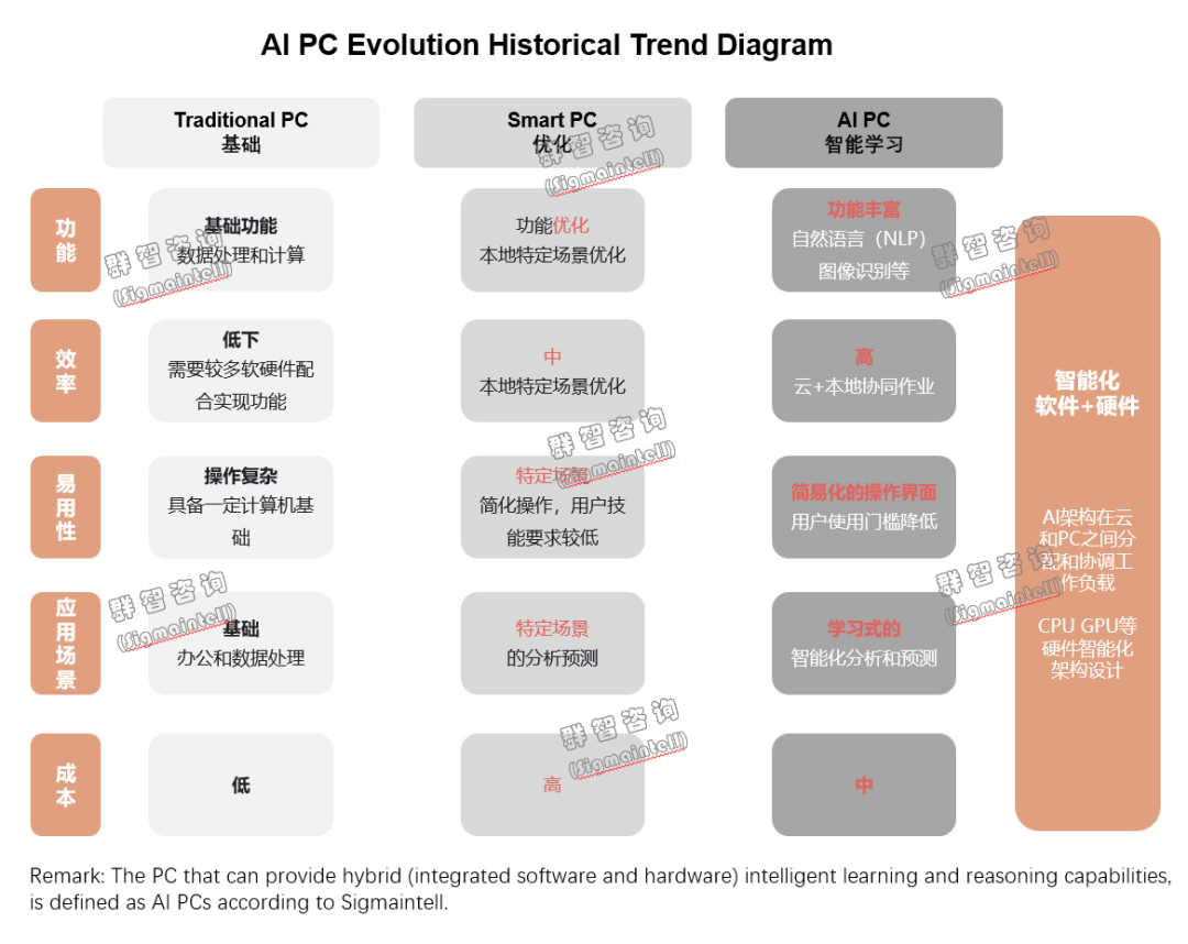 AI PC将会促进用户对于AI智能化的强劲感知,从而坚定用户对于AI PC的信赖度,并同时刺激用户换机需求。
