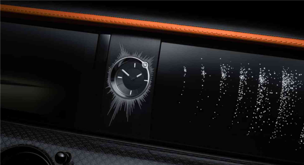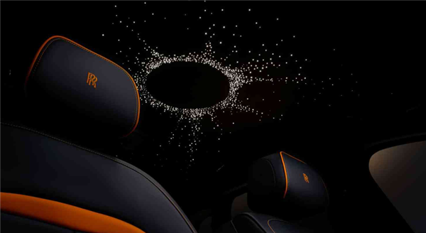 座椅方面,橙色皮革叠放于黑色皮革之下,并由超20万个独立打孔工艺塑造出星空的效果。Bespoke高级定制部门采用参数化设计工具开发出专属的独特打孔图案,并历经七次反复试验迭代及手工调整,最终呈现出来。