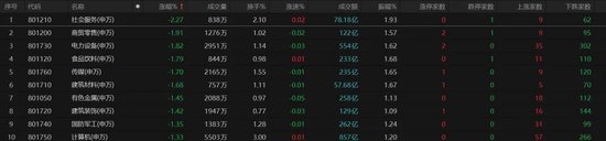 下跌方面,社会服务、商贸零售、电力设备、食品饮料、传媒等板块跌幅居前。