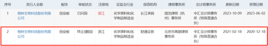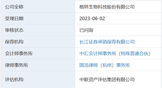 2023年6月2日,格林生物在创业板IPO的申请获受理,保荐机构为长江证券,会计师事务所为中汇,律师事务所为国浩。