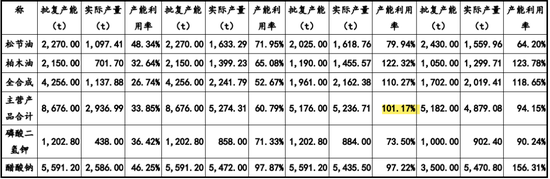 醋酸钠为公司副产品,公司原“废水(残液)资源化处理循环经济项目”(杭环函[2013]37号)批复醋酸钠产能为3,500.00吨,2020年,公司醋酸钠产品产量为5,470.80吨,产能利用率为156.31%,存在超产能情况。