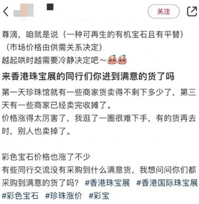 珠宝爱好者陈小姐如今也想跟风入手。但让她意外的是,年初还可以随便挑的货现在成了稀缺品。