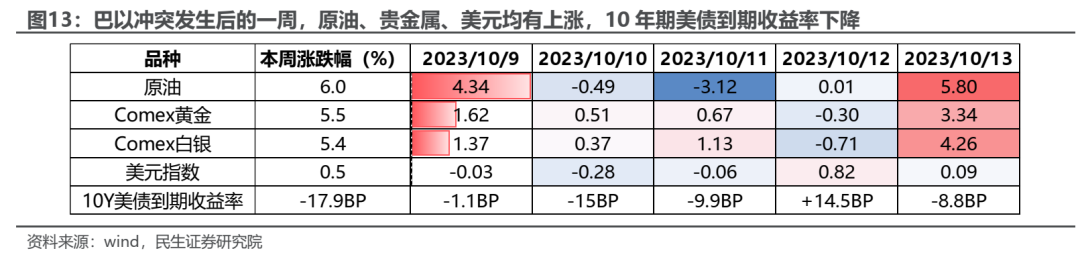 在产业合作难以达成的背景下,“量增”或许是一种更难以琢磨的“成长故事”,更具备确定性的反而是价格的不断攀升。从近期公布的9月份美国价格数据来看,通胀进一步回升并超出万得一致预期,而近期巴以冲突、全球普遍的贸易壁垒,或将分别从资源和制造端进一步加大供需矛盾。往后看,在加息尾声名义利率维持高位不变的情况下,随着通胀预期向实际不断回升的通胀数据靠近,实际利率反而会出现下降,这也意味着实际利率驱动的实物资产相对于名义利率驱动的金融资产更加占优。