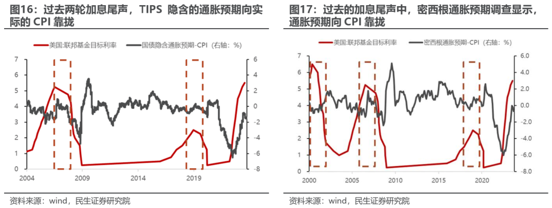 而在美国CPI公布之后,美联储官员的表态却已经开始转向“鸽派”,认为加息政策的效果将在滞后的几个月中逐渐呈现,那么往后看,在名义利率维持高位不变的情况下,随着通胀预期向实际不断回升的通胀数据靠近时,实际利率反而会出现下降,这也意味着实际利率驱动的实物资产相对于名义利率驱动的金融资产更加占优。