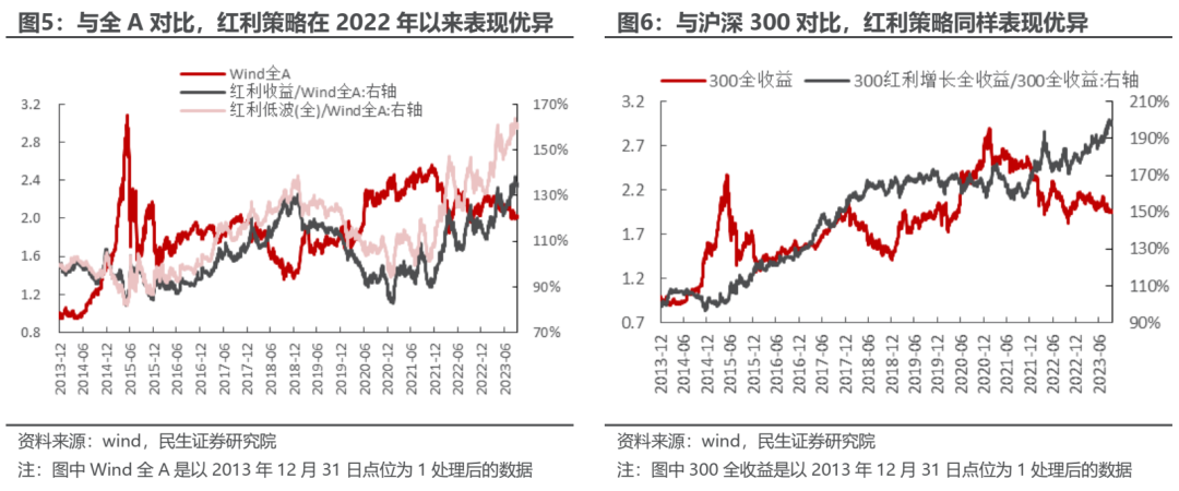 尽管宏观经济在多个维度改善,经济的复苏越来越难以被证伪,然而从市场表现上来看,投资者们并未对与宏观经济紧密相关的板块报以过多青睐,本周涨幅靠前的领域集中在短期存在产业创新和增量需求逻辑的华为产业链、以减肥药为代表的创新药板块上。这或许反映出投资者们已经接受经济进入了一个越来越缺乏弹性的时期,经济修复的弹性带不回相关板块成长性的回归。而面对这样的环境,红利投资是一种解法,我们此前已经用多篇专题报告来阐述了在回报率提升困难下的红利策略,“红利策略”确实也在2022年以来表现优异,积累了一定的超额收益。于是市场更愿意去选择另外一条路径——在美债收益率高位震荡、加息预期减弱的窗口期,希望寻找到下一个时期的成长板块,而华为产业链和创新药近期取得的创新正好符合了投资者所希望找到的“增量空间”。