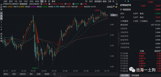 只不过美联储反应十分及时,快速软化了自身态度——两年美债利率大幅下挫: