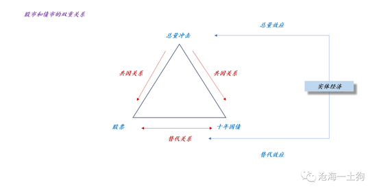 对于负面的经济冲击,当总量效应大于替代效应,股票和债券一起下跌;当总量效应弱于替代效应,股票下跌,债券上涨。