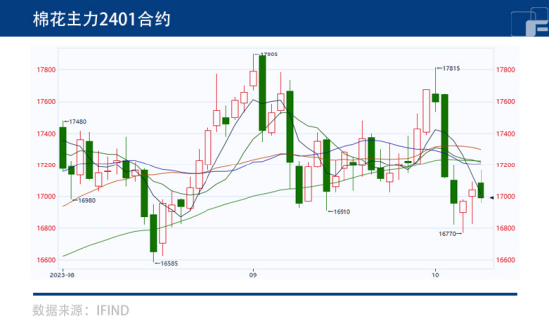 上周郑棉期价“一泻千里”,十月以来行情整体持续下跌,截至10月16日,棉花主力合约收于16990元/吨,十月来跌幅达3.47%,持仓总量60.79万手。