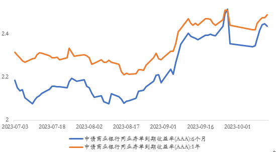 一方面,资金逐渐转为宽松,另一方面2.5%的MLF对存单价格有一定的锚定效应,上周同业存单价格先下后上但未突破2.5%。