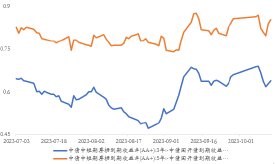 随着资金面的转松和权益市场的持续偏弱,理财、券商和基金等非银配置力量对信用债的需求依然旺盛,其中中短端信用债的买盘相对强势,节后3年内信用利差有所压缩,5年信用利差维持平稳。