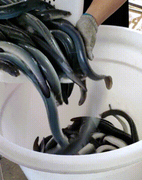 而且,由于人工繁殖技术还不成熟,他们只能从海洋捕捞回来的小小透明状的“玻璃鳗”开始培育。这些玻璃鳗价格不菲,日本鳗鲡价格高的时候一尾高达40多元。所以,养殖户们都把它们当作“水中软黄金”。