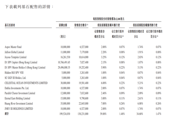 国际配售部分,极兔获得基石投资者认购约2亿美元(约15.56亿港元)股份,相当于集资规模的40%,当中包括顺丰控股、淡马锡、腾讯、高瓴资本、博裕资本。