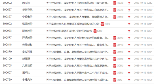 据不完全统计,10月16日晚间,超70家深市公司披露股东提前终止减持计划、自愿承诺不减持及延长锁定期的相关公告。其中43家公司宣布股东自愿承诺不减持或延长限售股锁定期。