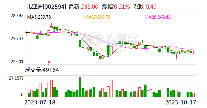 10月17日晚间,比亚迪发布业绩预告显示,预计2023年前三季度归母净利润205亿元至225亿元,同比增长120.16%至141.64%,主要是新能源汽车行业延续良好增长势头,公司新能源汽车销量持续创下历史新高,稳居全球新能源汽车销量第一。