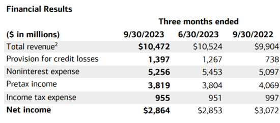 报告期内,美银消费者银行业务信贷损失准备金增长了近90%,三季度信用卡净冲销额为9.11亿美元,仍低于2019年第四季度大流行前的水平。
