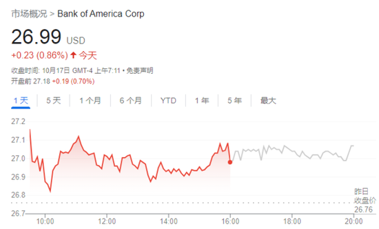 财报公布后,美国银行股票盘前小幅上涨,高盛走低。