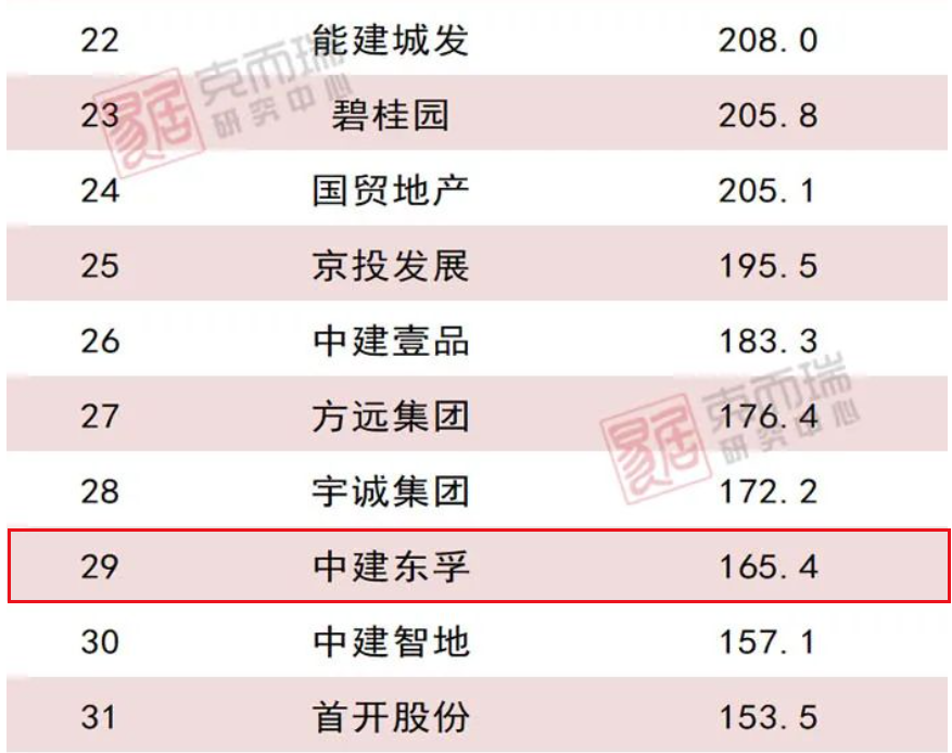 据克而瑞统计,今年1-9月,中建东孚新增土地货值165.4亿元,位居行业第29位。