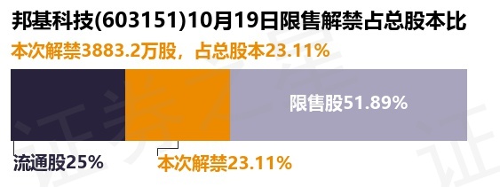 证券之星消息,根据市场公开信息整理,邦基科技(603151)于10月19日将有3883.2万股限售股份解禁上市,为公司首发原股东限售股份,占公司总股本23.11%。最近一年内,该股累计解禁4200.0万股,占总股本的25.0%。本次解禁后,公司还有8716.8万股限售股份,占总股本51.89%。具体如下图所示: