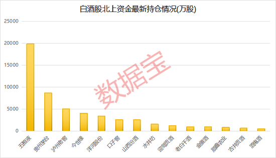 截至目前,共计14股被外资持有500万股以上。以绝对量看,北上资金持有五粮液1.99亿股,持有贵州茅台8688.79万股,另持有泸州老窖、今世缘和洋河股份3000万股以上。