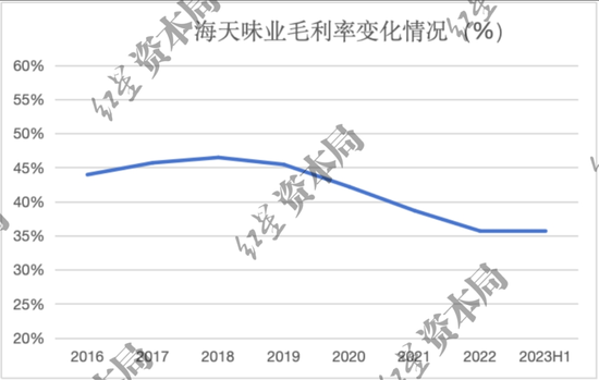 财报显示,2023年上半年,海天味业上半年毛利率为35.91%,较2022年略增,然而2022年公司销售毛利率创下自2012年以来的新低。