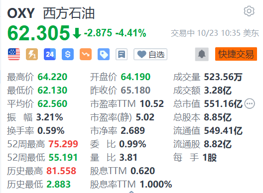 西方石油(OXY.US)跌4.41%,报62.305美元。消息上,小摩表示,即使巴以冲突扩大,石油消费的下降也会抑制油价; 油价上涨,再加上货币贬值和借贷成本飙升,削减了石油需求; 该行还称,以色列以前的军事冲突很少造成持久的价格动荡。