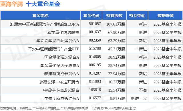 根据2023基金半年报公募基金重仓股数据,重仓该股的公募基金共22家,其中持有数量最多的公募基金为汇添富中证新能源汽车产业指数(LOF)A。汇添富中证新能源汽车产业指数(LOF)A目前规模为73.43亿元,最新净值1.678(10月20日),较上一交易日上涨0.94%,近一年下跌29.79%。该公募基金现任基金经理为过蓓蓓。过蓓蓓在任的基金产品包括:汇添富中证主要消费ETF联接A,管理时间为2015年8月3日至今,期间收益率为125.08%;汇添富中证主要消费ETF,管理时间为2015年8月3日至今,期间收益率为129.05%;汇添富中证医药卫生ETF,管理时间为2015年8月3日至今,期间收益率为-11.22%;汇添富中证生物科技指数(LOF)A,管理时间为2016年12月22日至今,期间收益率为32.76%。
