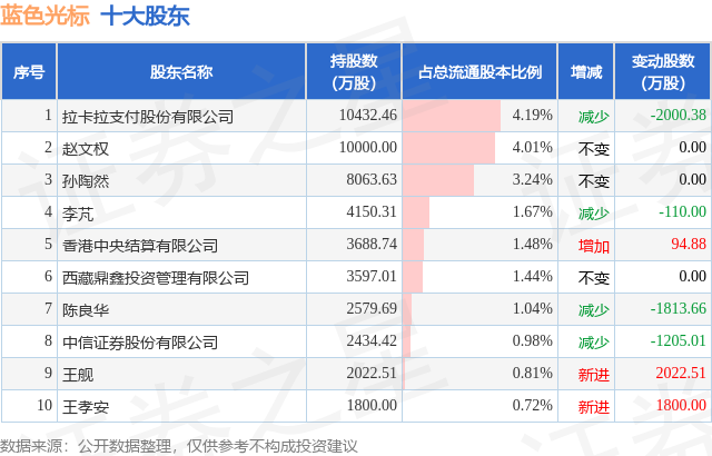 根据蓝色光标2023年中报公布的十大股东详情如下: