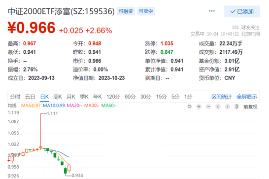10月16日,沪深交易所ETF两融标的第三季度扩容名单正式生效,有30余只ETF被调入两融标的名单。此次ETF两融标的扩容,纳入不少特色鲜明的ETF产品,如成立至今仅一月有余的中证2000ETF。中证2000ETF添富(159536)于今年9月13日成立,9月21日上市,是国内首批跟踪中证2000的ETF,成立至今仅一月有余,上市以来截至10月18日日均成交额超1.25亿元。