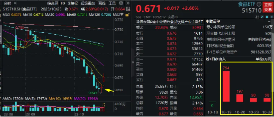 资金面上,近日来吃喝板块接连调整,资金开始借道ETF逆市布局。数据显示,截至10月24日,食品ETF(515710)连续4日获资金净申购,金额合计近1200万元。