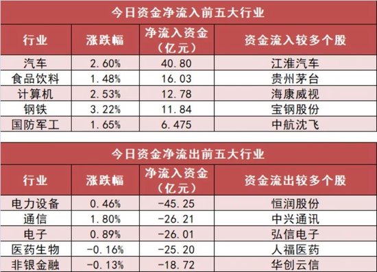 【25日资金路线图】汽车板块净流入40.8亿元居首 龙虎榜机构抢筹多股