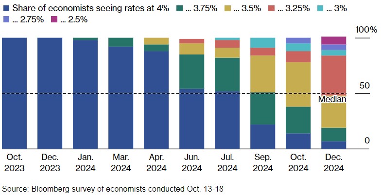 据了解,欧洲央行官员已经暗示,借贷成本将在较长一段时间内保持高位,以将通胀拉回2%的目标。尽管一些分析师警告称,如果中东紧张局势波及能源价格,欧洲央行将进一步收紧货币政策,但一些分析师警告称,可能需要在明年秋季之前降息,因为市场目前正在定价。
