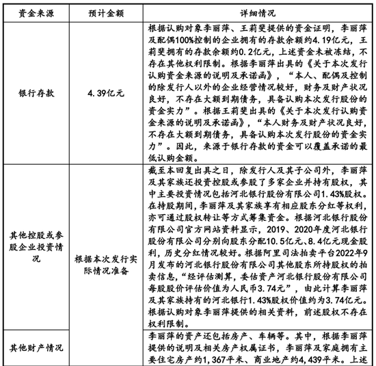 请发行人补充说明:(1)以本次发行规模的上限作为测算的基础,说明认购资金的来源,如存在差额,请按以下情形逐一充分说明:认购资金来源于河北银行股权转让款的,请说明前述转让需履行的主管部门审批程序及相关风险;认购资金来源于河北银行股权质押的,请说明具体质押方案,包括但不限于可质押的银行及质押股权可取得的资金金额,结合其他非上市金融机构股权质押率情况说明40%的质押率是否审慎;认购资金来源于房产变现的,结合目前房产抵押、相同地段房价等情况,说明通过抵押或者出售方式取得的资金金额;认购资金来源于李丽萍及其家族控制的企业银行借款的,请说明拟提供借款的银行、借款额度、利率、担保物要求等具体情况;(2)结合本次发行价格与发行人近期二级市场股价波动情况,以及相关资产是否存在无法在发行前及时变现的情况,说明本次发行方案是否存在无法实施的风险,如二级市场价格低于本次发行价格,发行人是否仍会启动相关发行,如否,是否存在虚设发行规模上限进行信息误导的情况。
